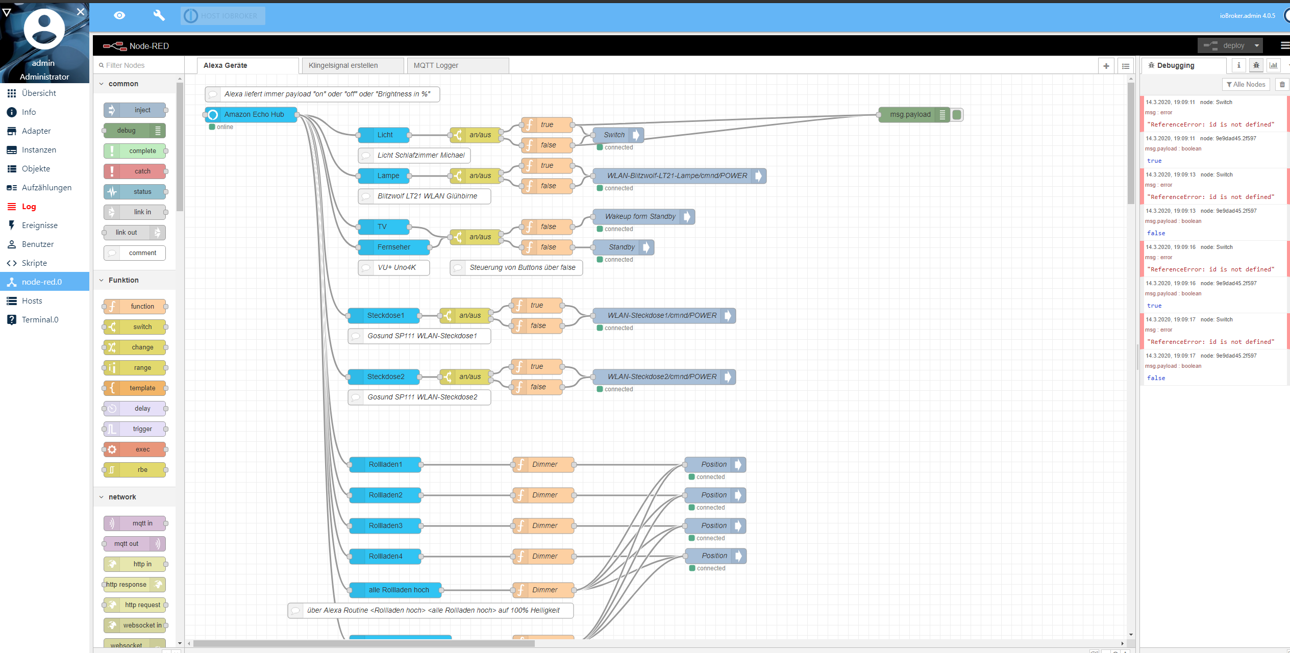 Seit 1-2 Tagen funktioniert meine Steuerung meiner Geräte über Alexa und NodeRed nicht mehr. Evtl. hängt es mit dem Update von NodeRed V13 auf V16 zusammen, da bin ich aber nicht ganz sicher.