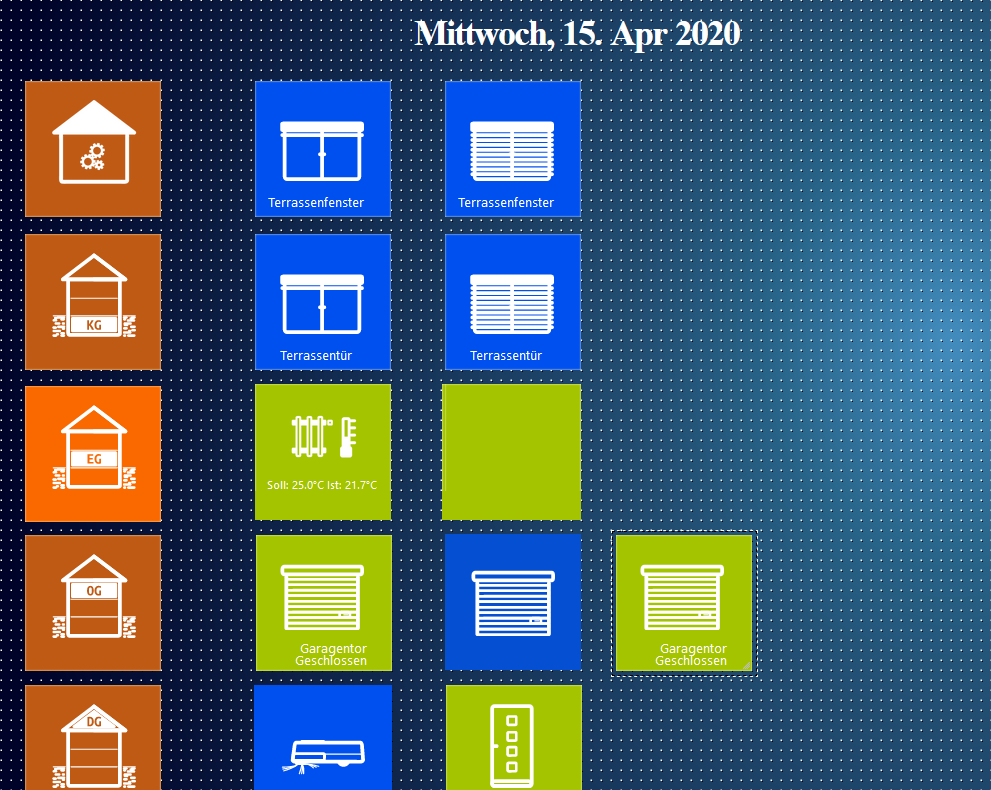 Höhe und Breite war leer und bei den sichtbaren Widgets bei 136 Pixel jeweils. Ich dachte ich hätte schon den Fehler gefunden, aber auch mit der Anpassung nicht sichtbar........[{"tpl":"tplMetroTileBool","data":{"oid":"hm-rpc.0.OEQ1318504.1.STATE","visibility-cond":"==","visibility-val":1,"hover":"true","label_false":"Garagentor Geschlossen","label_true":"Garagentor Offen","bg_class_false":"bg-lime","bg_class_true":"bg-crimson","icon_class_false":"","icon_class_true":"","icon_badge_false":"","icon_badge_true":"","badge_bg_class_false":"","badge_bg_class_true":"","badge_top":"0","badge_left":"0","brand_bg_class_false":"","brand_bg_class_true":"","visibility-groups-action":"hide","signals-cond-0":"==","signals-val-0":true,"signals-icon-0":"/vis/signals/lowbattery.png","signals-icon-size-0":0,"signals-blink-0":false,"signals-horz-0":0,"signals-vert-0":0,"signals-hide-edit-0":false,"signals-cond-1":"==","signals-val-1":true,"signals-icon-1":"/vis/signals/lowbattery.png","signals-icon-size-1":0,"signals-blink-1":false,"signals-horz-1":0,"signals-vert-1":0,"signals-hide-edit-1":false,"signals-cond-2":"==","signals-val-2":true,"signals-icon-2":"/vis/signals/lowbattery.png","signals-icon-size-2":0,"signals-blink-2":false,"signals-horz-2":0,"signals-vert-2":0,"signals-hide-edit-2":false,"visibility-oid":"ping.0.ioBroker-RasPi.192_168_2_12","icon_true":"/icons-mfd-svg/fts_garage_door_10.svg","icon_width":"100","icon_top":"16","icon_left":"19","icon_false":"/icons-mfd-svg/fts_garage_door_100.svg","icon_height":"100","lc-type":"last-change","lc-is-interval":true,"lc-is-moment":false,"lc-format":"","lc-position-vert":"top","lc-position-horz":"right","lc-offset-vert":0,"lc-offset-horz":0,"lc-font-size":"12px","lc-font-family":"","lc-font-style":"","lc-bkg-color":"","lc-color":"","lc-border-width":"0","lc-border-style":"","lc-border-color":"","lc-border-radius":10,"lc-zindex":0},"style":{"left":"261px","top":"541px","text-align":"right","overflow-x":"","width":"136px","height":"136px"},"widgetSet":"metro"}]Was mir auffällt, es ist nur das Widget was nur was anzeigt, also kein Button zum drücken. Die sind alle noch da. Ich kann leider nicht finden wie das Widget heißt. Aber nur dieses geht nicht mehr.