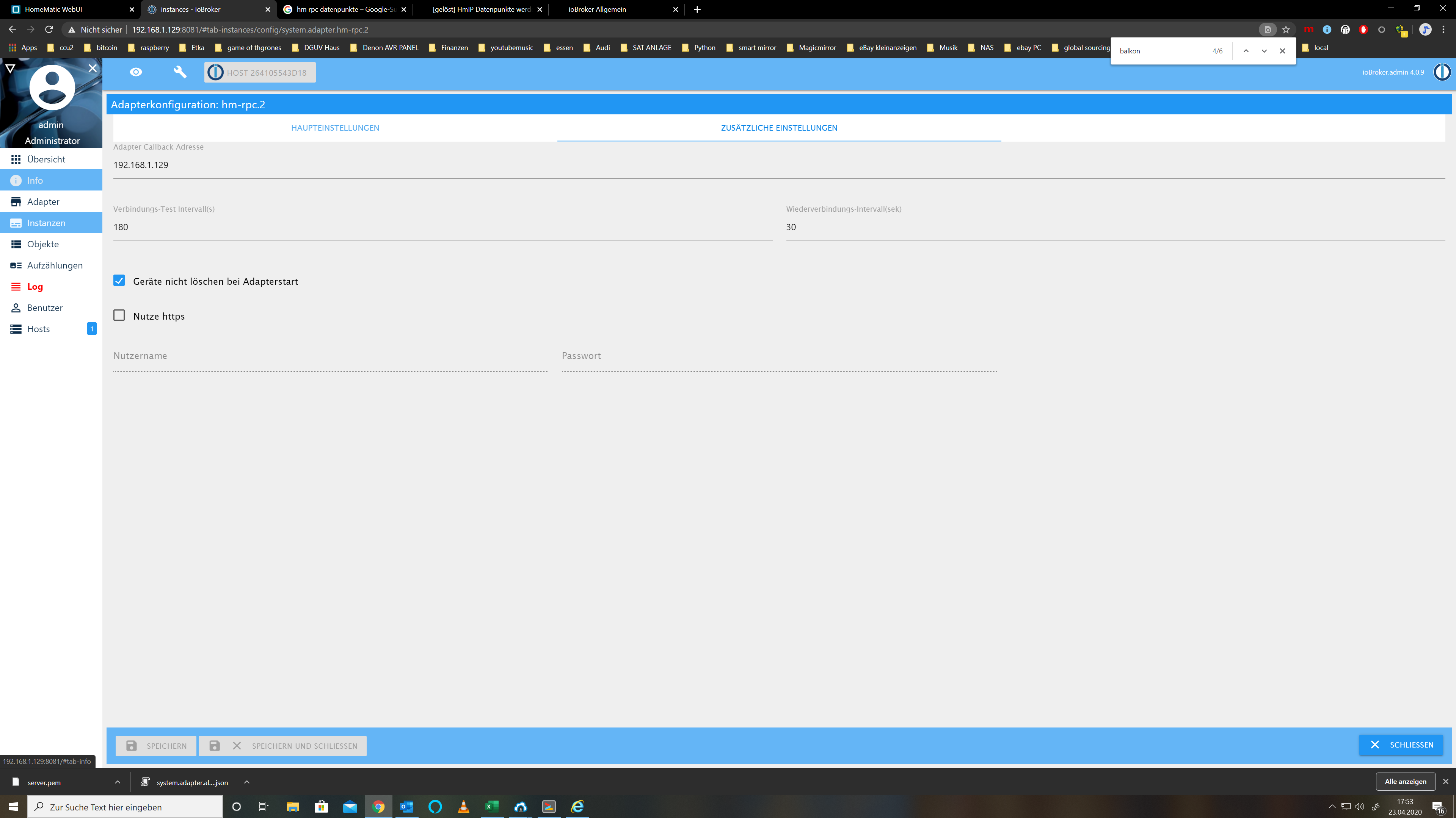 io broker 192.168.1.129:8081hm-rpc.1 Homematic