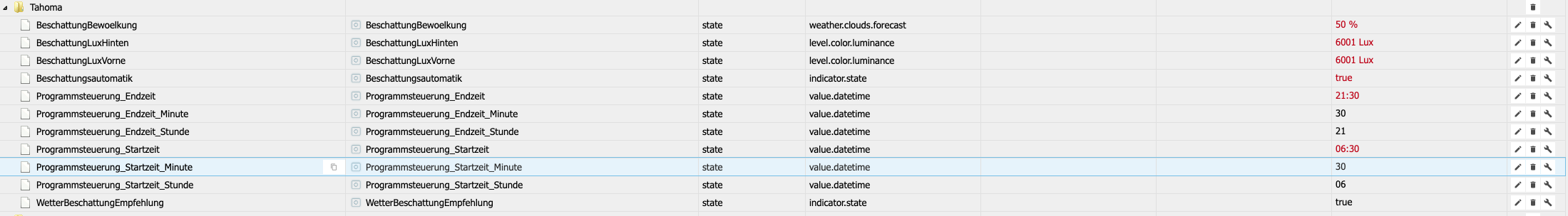 createState('javascript.0.Tahoma.Beschattungsautomatik', false, false, {type:"boolean", name:"Beschattungsautomatik", role:"indicator.state", unit:""});