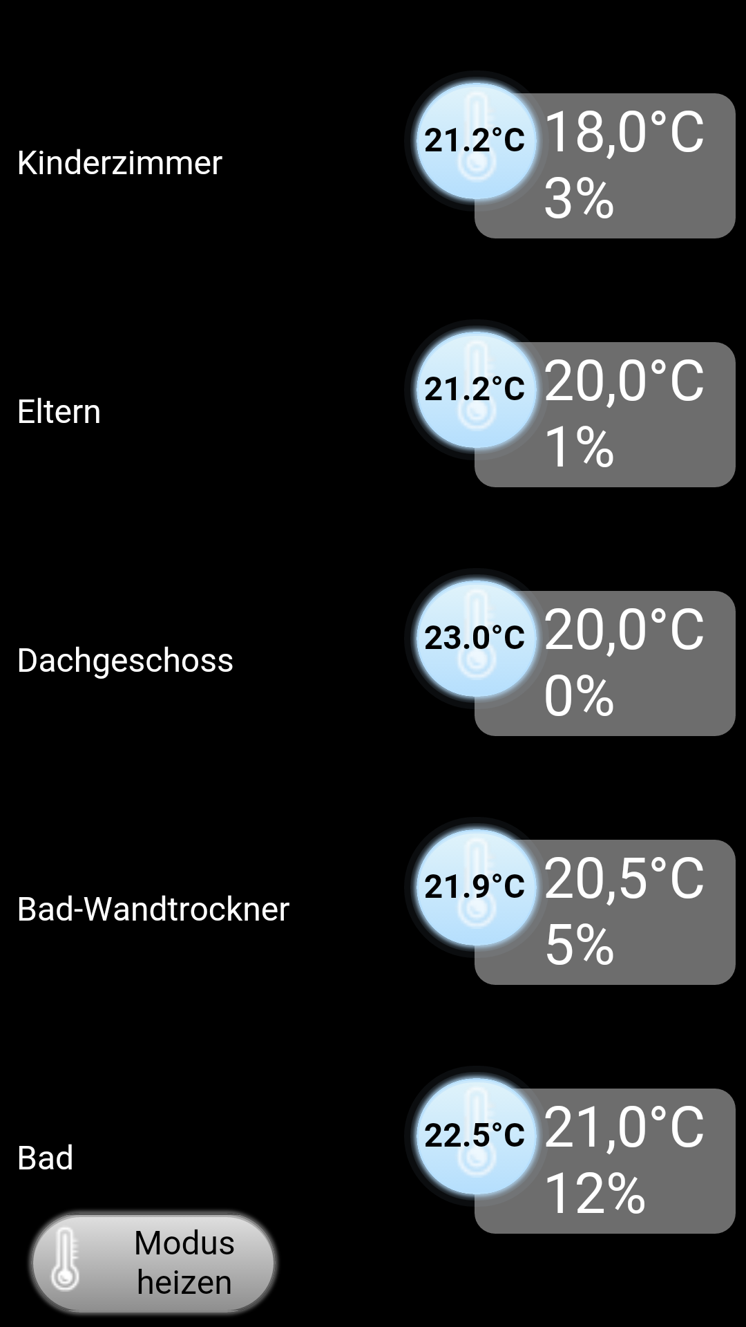 z.B. Schalter aus Bad = 20,0 Grad Kinderzimmer = 19,5 Grad ….