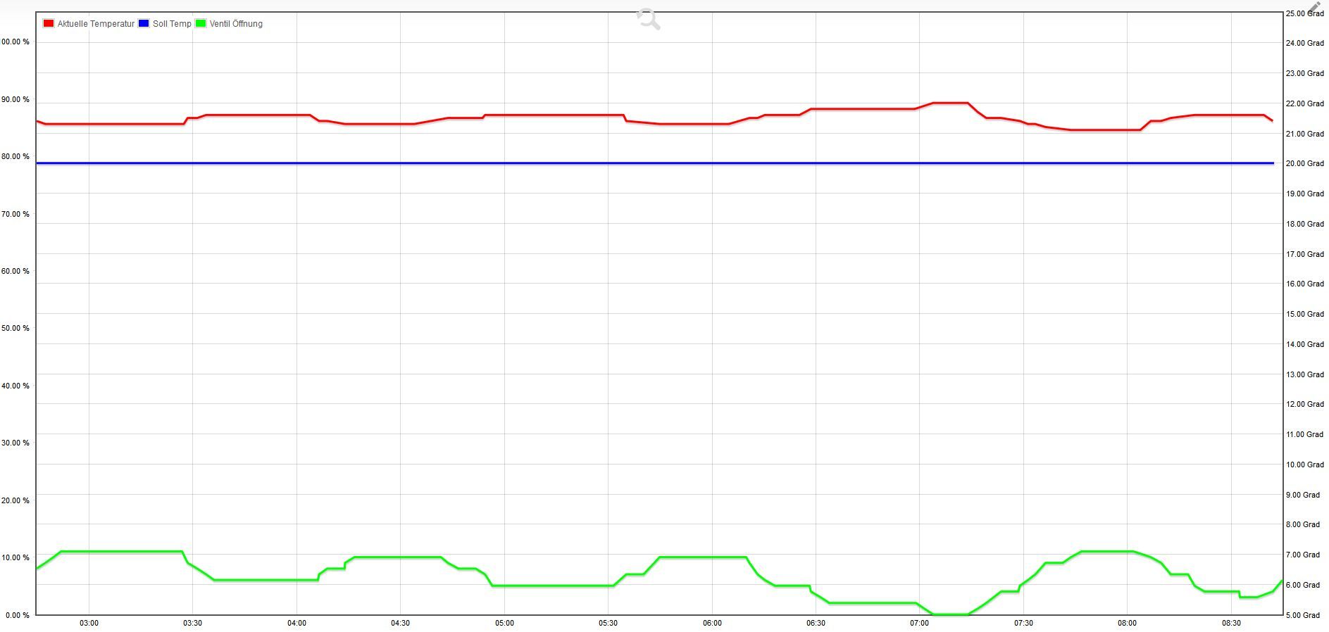 wollte ich folgende Werte beobachten: Soll-Temp, Ist-Temp, Ventil Stellung und Rel. Luft feuchte. Alle werte, bis auf die Ventilstellung, sollen aus dem Wandthermostat gelesen werden, da dieses direkt mit dem Heizkörperthermostat verknüpft ist. Ich habe im ioBroker eingestellt, dass diese Daten an sql übergeben werden sollen, in Flot ddie Linien erstellt. Jetzt zeigt mit Flot aber nur die Linien für Ventilstellung und Rel. Luftfeuchte an und ich weiß nicht warum? Jemand dazu eine Idee?