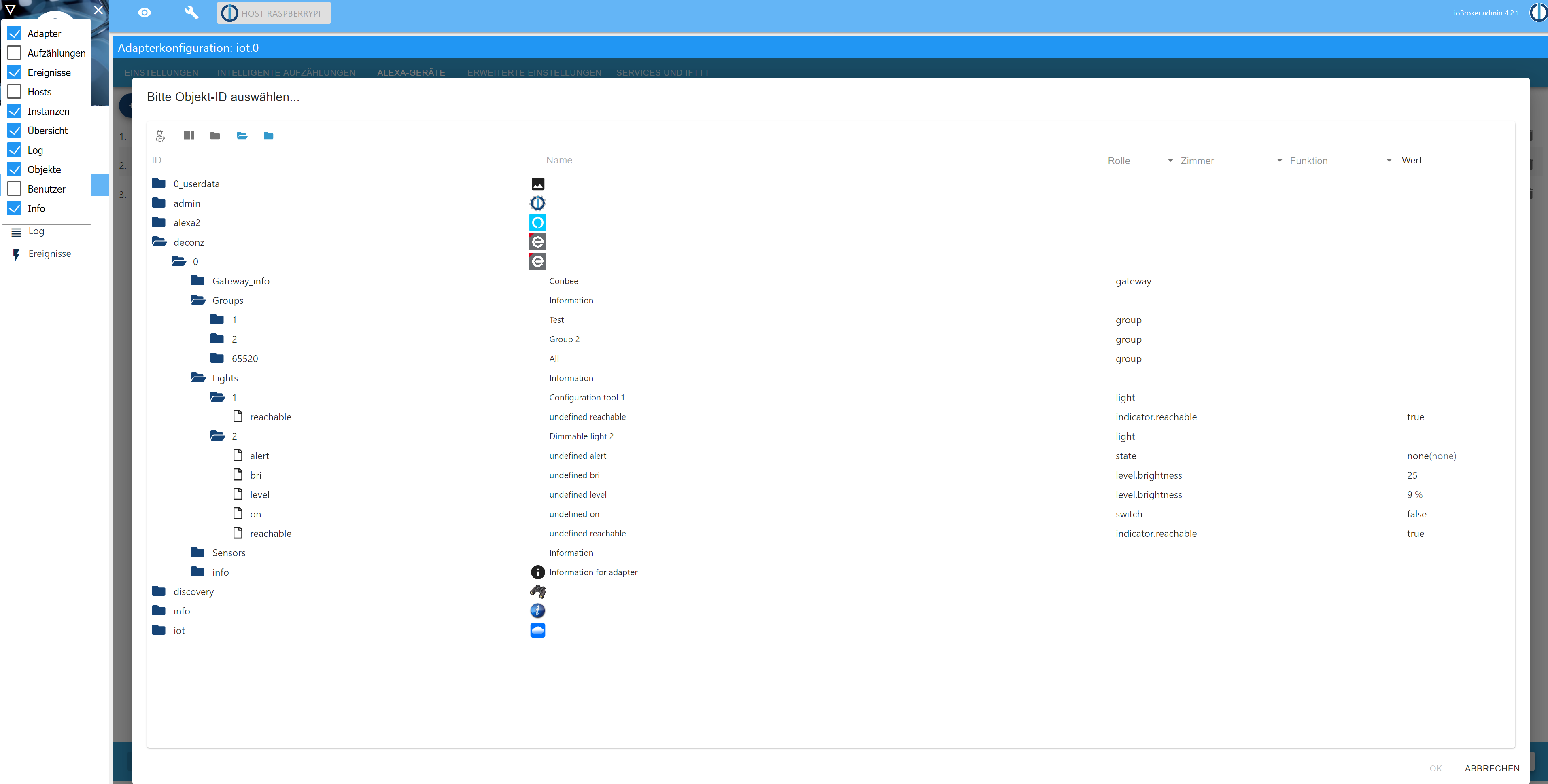 Die Lampen laufen ja über die Phoscon-App auf der Pi, aber wie kriege ich die Geräte die in dem deconz._Adapter aufgelistet sind in den iot._Adapter. Das ist ja die Voraussetzung dass Alexa sie auch finden kann um sie dann über Sprache steuern zu können.Gruß
