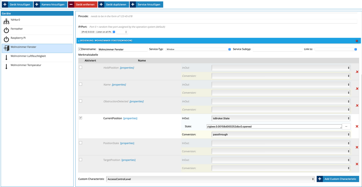 Muss ich bei Yahka als Service den CurrentPosition aktivieren oder den TargetPosition?