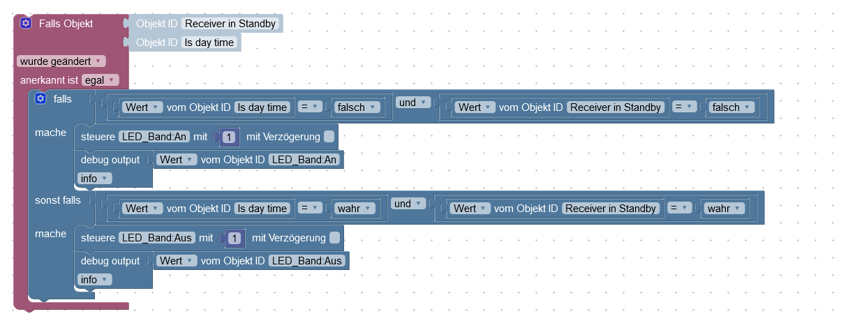 Dort die ID des isDaytime angebenNimm einen Logik block "UND" und klemme ihn hinter falls.