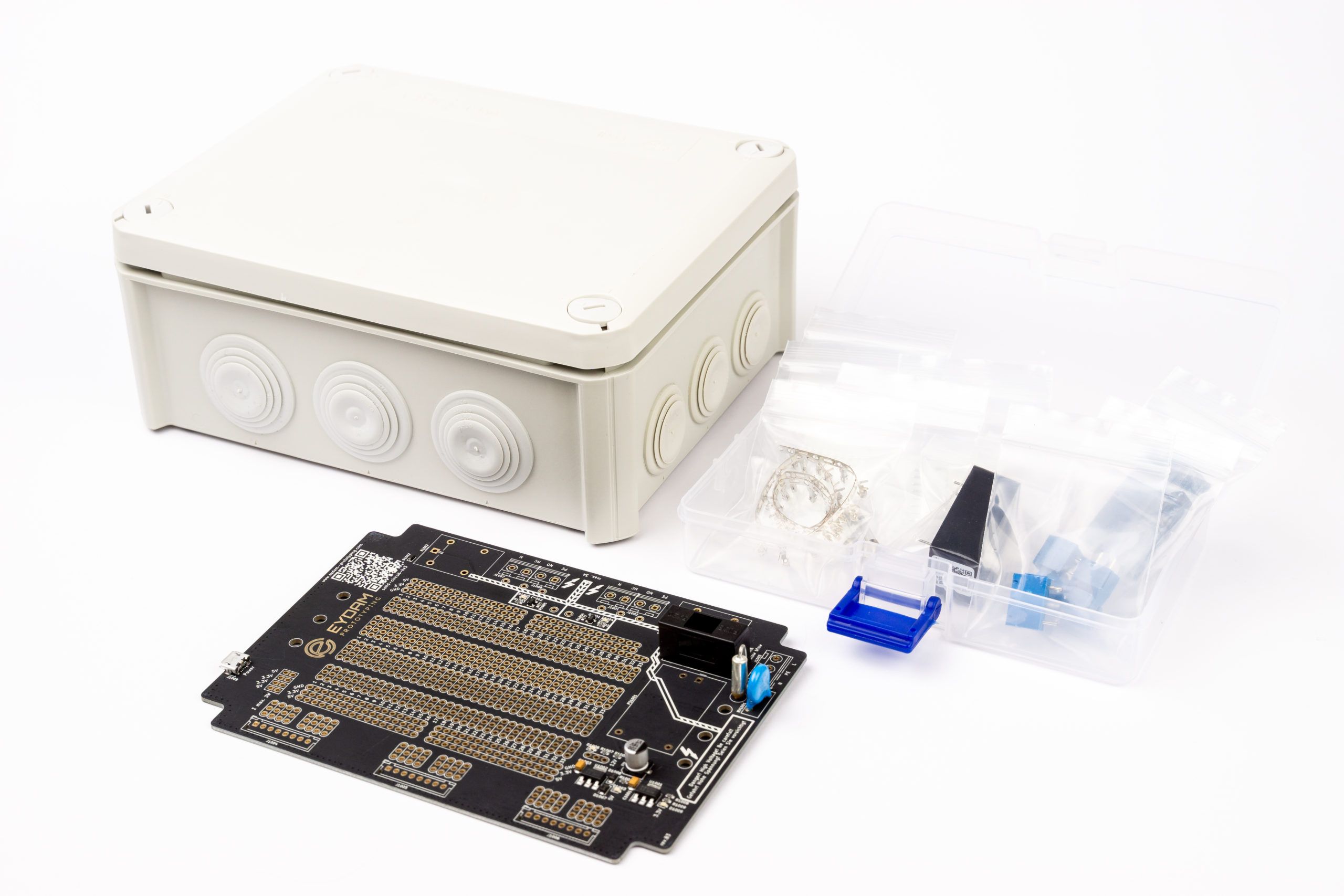 Ihr könnt eure Idee, die ihr auf einem Steckbrett aufgebaut habt, also einfach auf diese Platine übertragen und in ein Gehäuse packen (ist im Lieferumfang enthalten). Zum Debuggen am Schreibtisch ist ein USB-Stecker vorhanden (12V-Spannung funktioniert dann nicht).Auf meiner Website will ich in Zukunft auch noch mehr Tutorials vorstellen. Ein Tutorial für eine Wetterstation und eine Heizungssteuerung ist schon da.