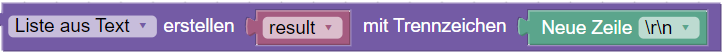 Der Block "Liste aus Text erzeugen mit Trennzeichen..." hat im js-code den split Befehl