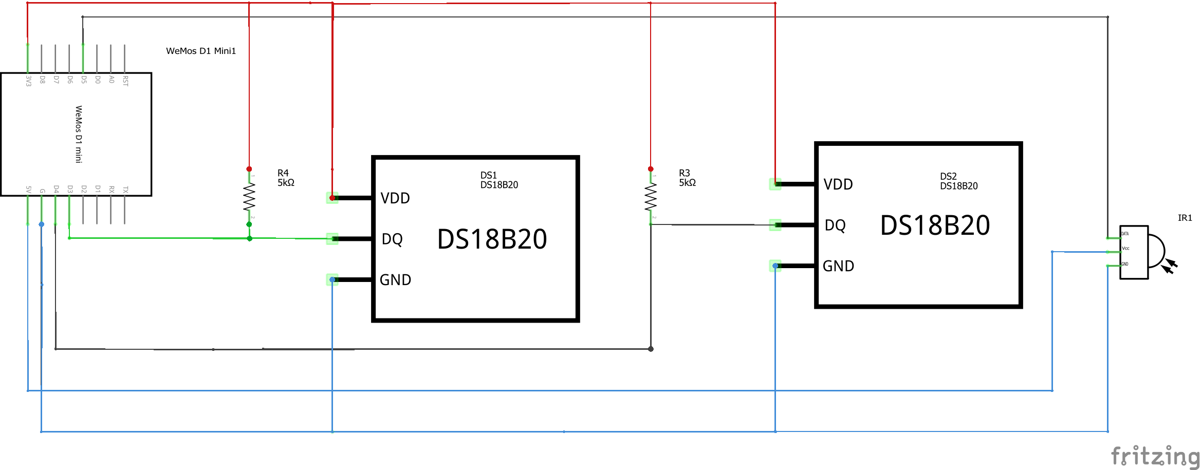 Ich habe den IR Sensor an einem bereits im TV-Lowboard vorhandenen ES8266 geklemmt. Dort überwacht er die Temperatur im inneren.