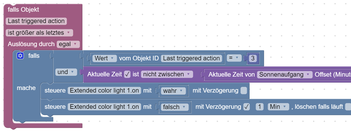 Wenn ich auf "wurde aktualisiert" von "Last triggered action" gehen dann passiert nix weil der scheinbar nicht aktualisiert wird, wenn sich der Wert nicht ändert.