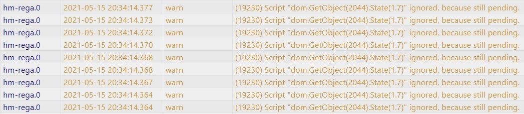 Ich möchte einen Datenpunkt von IOBroker in eine Variable der CCU schreiben, was auch mit den folgenden Blockly funktioniert. Ich bekomme jedoch unzählige Warnmeldungen im Log von IOBroker. Woran liegt das?