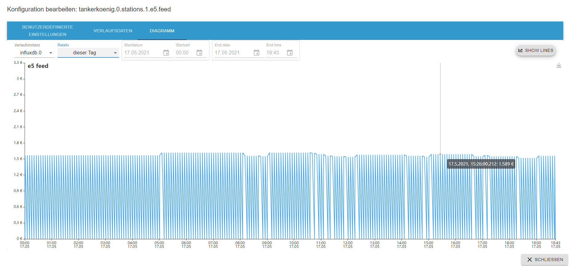 Woher kommen diese Werte welche unter 1€ sind? Das habe ich bei allen 3 Tankstellen die ich in influx tracken lasse.