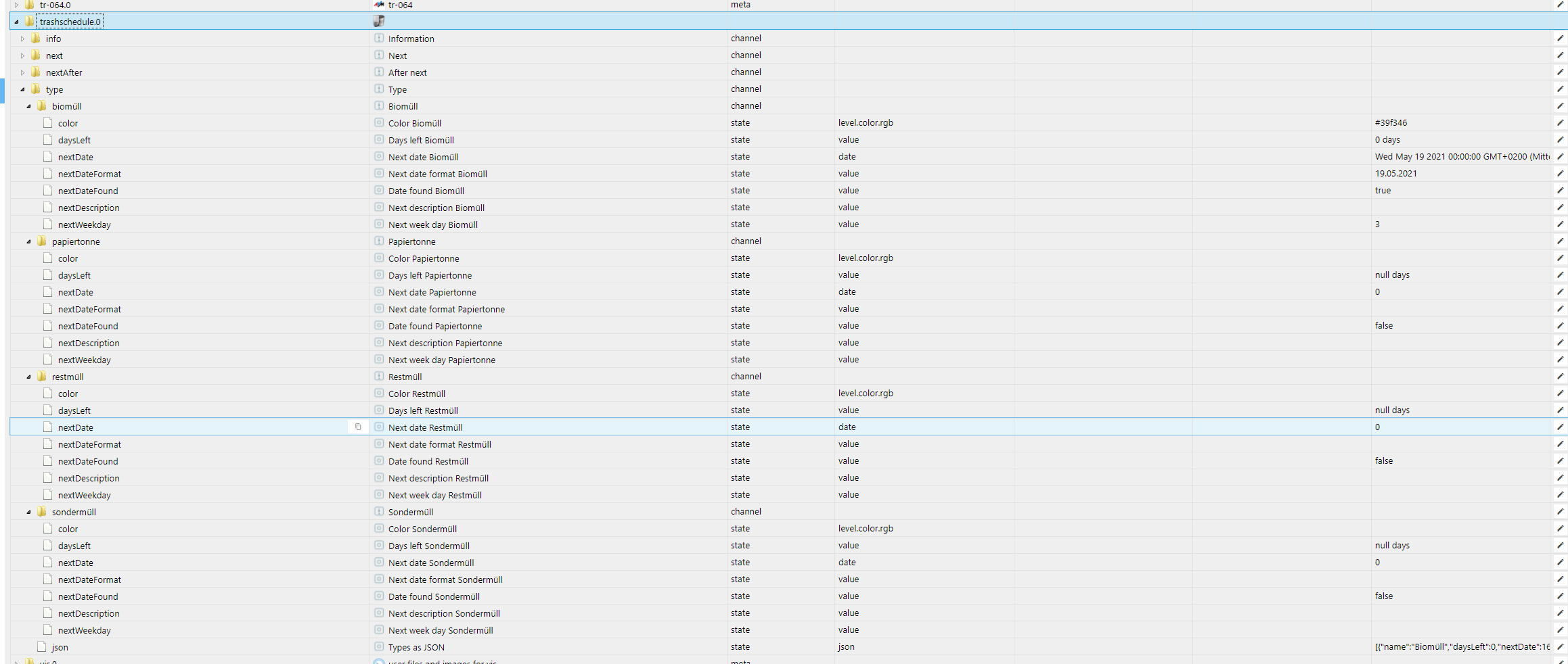 @crunchip Ich habe den Adapter "Trashschedule" erst jetzt installiert, wo ich bereits diese Versionen hatte.
