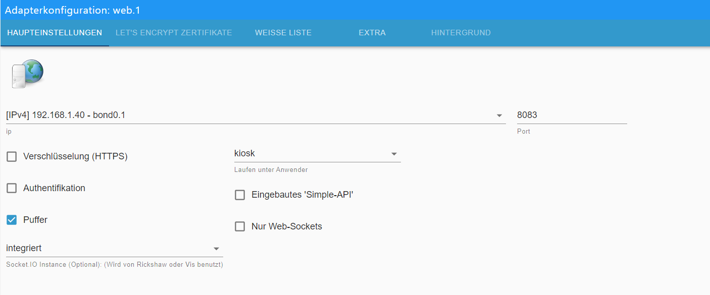 • Nur Websockets im Adapter eingeschaltet
