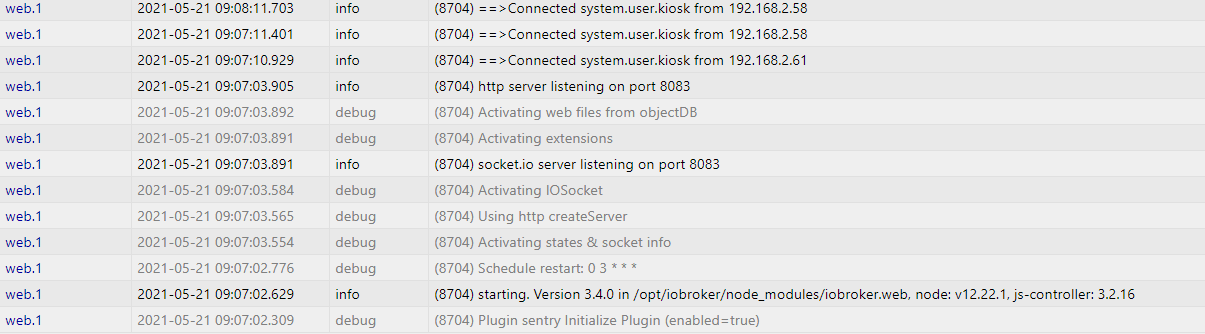 web.1 z.b. hat die Whitelist aktiviert für die Kiosk Geräte. Das muss ich machen, da dies sonst mit der Auth kollidiert und dann nicht mehr funktioniert.