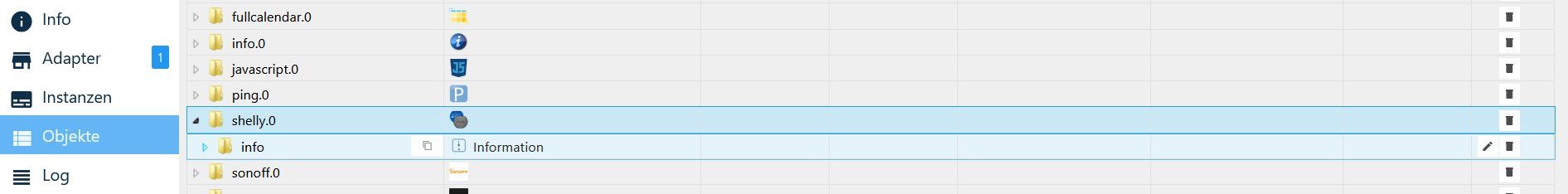Der Adapter von Shelly ist auch installiert und meldet sich grün.