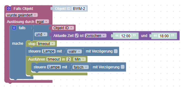 ich möchte in Blockly eine Lampe für eine bestimmte Zeit ein- und nach Ablauf dieser Zeit dann wieder ausschalten. Wie wird so etwas gelöst? Mit einem Timeout?