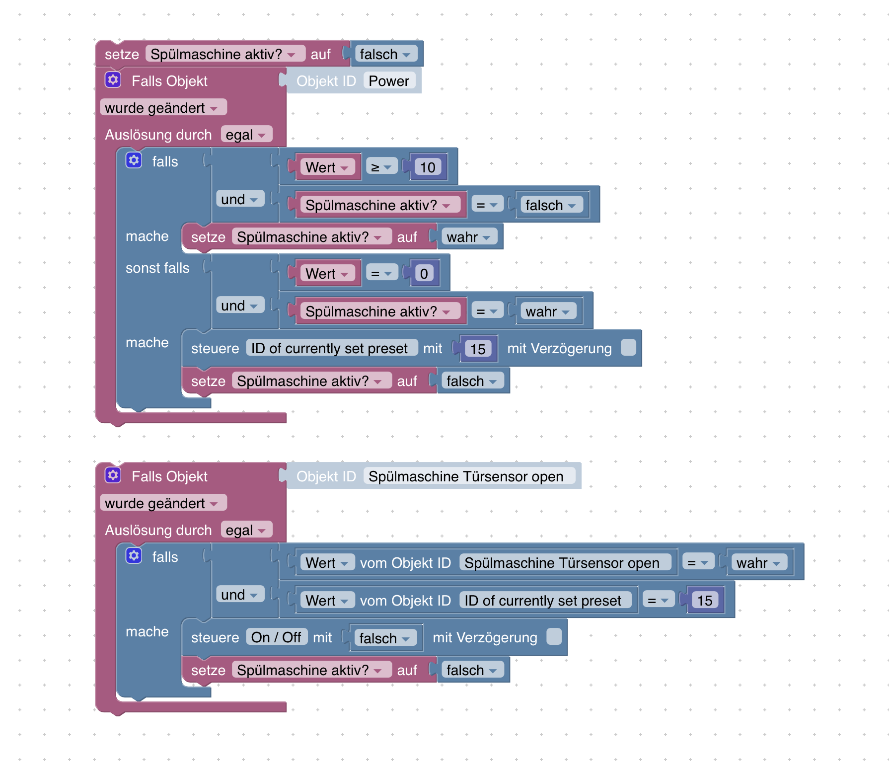 Das Blockly Script habe ich im Netz gefunden , es ist aber für eine Waschmaschine gedacht und muss angepasst werden .