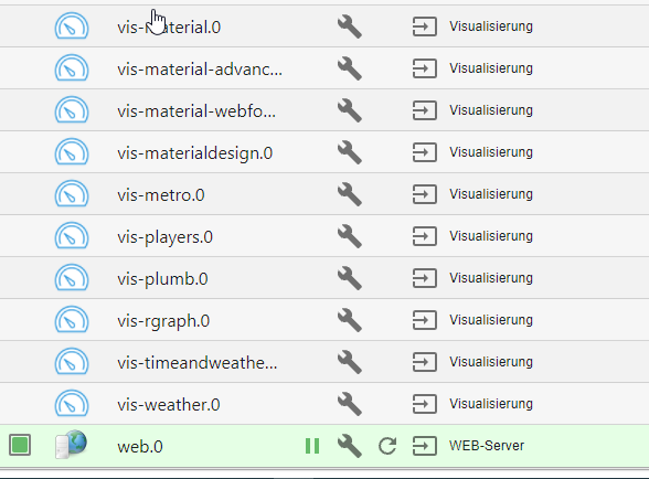 In wie weit fehlte WEB, als installierte Instanz nicht mehr sichtbar im Admin oder im Allgemeinen der Port 8082 für den Aufruf von VIS.