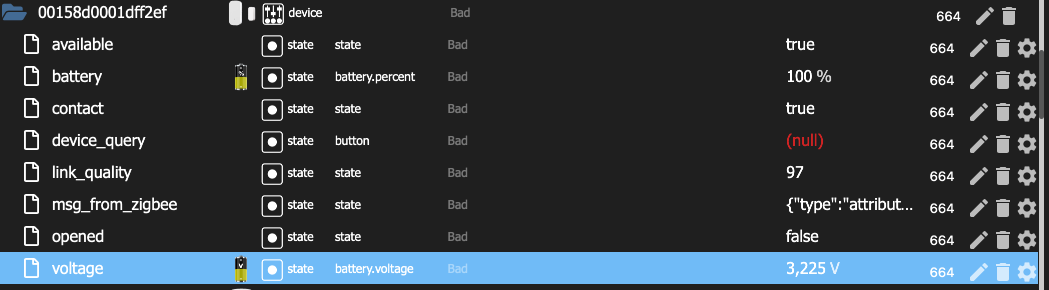Da der Prozentwert der ZigBee Geräte nicht stimmt greife ich hier zum voltage Datenpunkt.
