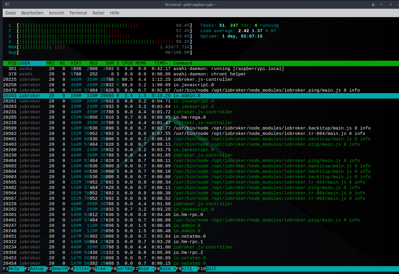iobroker läuft auf raspberry pi4 8gb unter raspbian