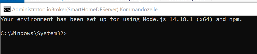 Vorher hatte eben das nicht funktioniert (wie in meinem Eingangspost geschrieben).Jetzt, nachdem ich die Updates von js-controller3.2 und Node.js 14.18.1 habe (14.18.2 habe ich noch nicht installiert) komme ich mit dem gleichen Menülink aus dem IOBrokermenü beim Aufruf der Kommandozeile wieder bei C:\Windows\System32 raus.