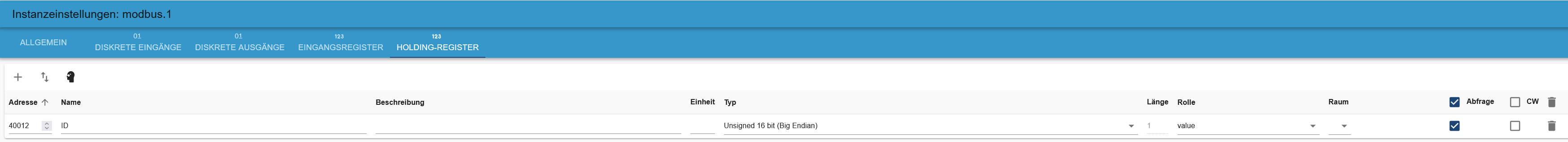 Liegt das Problem bei mir, mache ich einen Fehler oder ist hier der Slave Mode (Server) in Bezug auf die Holdingregister verbuggt?Systemdata Hardwaresystem: HP ProLiant MicroServer N54L Arbeitsspeicher: 16GB Festplattenart: SSD Betriebssystem: Ubuntu 20.04.3 LTS Node-Version: 12.22.7 Nodejs-Version: 12.22.7 NPM-Version: 6.14.15 Installationsart: Manuell Image genutzt: Nein Ergänzung:
