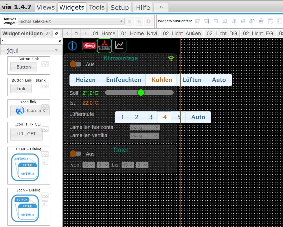 ich habe das Problem, dass seit gestern plötzlich die Darstellung des Widgets "jqui-Radiobuttons ValueList" und "jqui-Input" im vis Editor anders dargestellt wird, als in der Runtime. Egal ob auf dem Handy oder im Browser am PC, die Runtime wird korrekt dargestellt. Die Fehlerhafte Darstellung ist nur im Editor zu sehen. Das Aussehen der Widgets habe ich mit einem Eintrag in CSS "Projekt" angepasst was auch seit Anfang an korrekt funktionierte. Ich habe die vis Instanz bereits neu gestartet sowie den Host. Leider kein Erfolg. Ich habe auch unter View/CSS Allgemein/Thema verschiedene ausprobiert, ohne Erfolg.