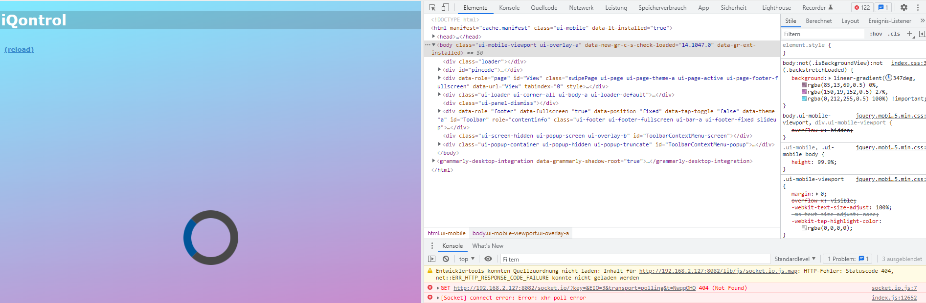 IQontrol Visualisierung lädt nicht mehr