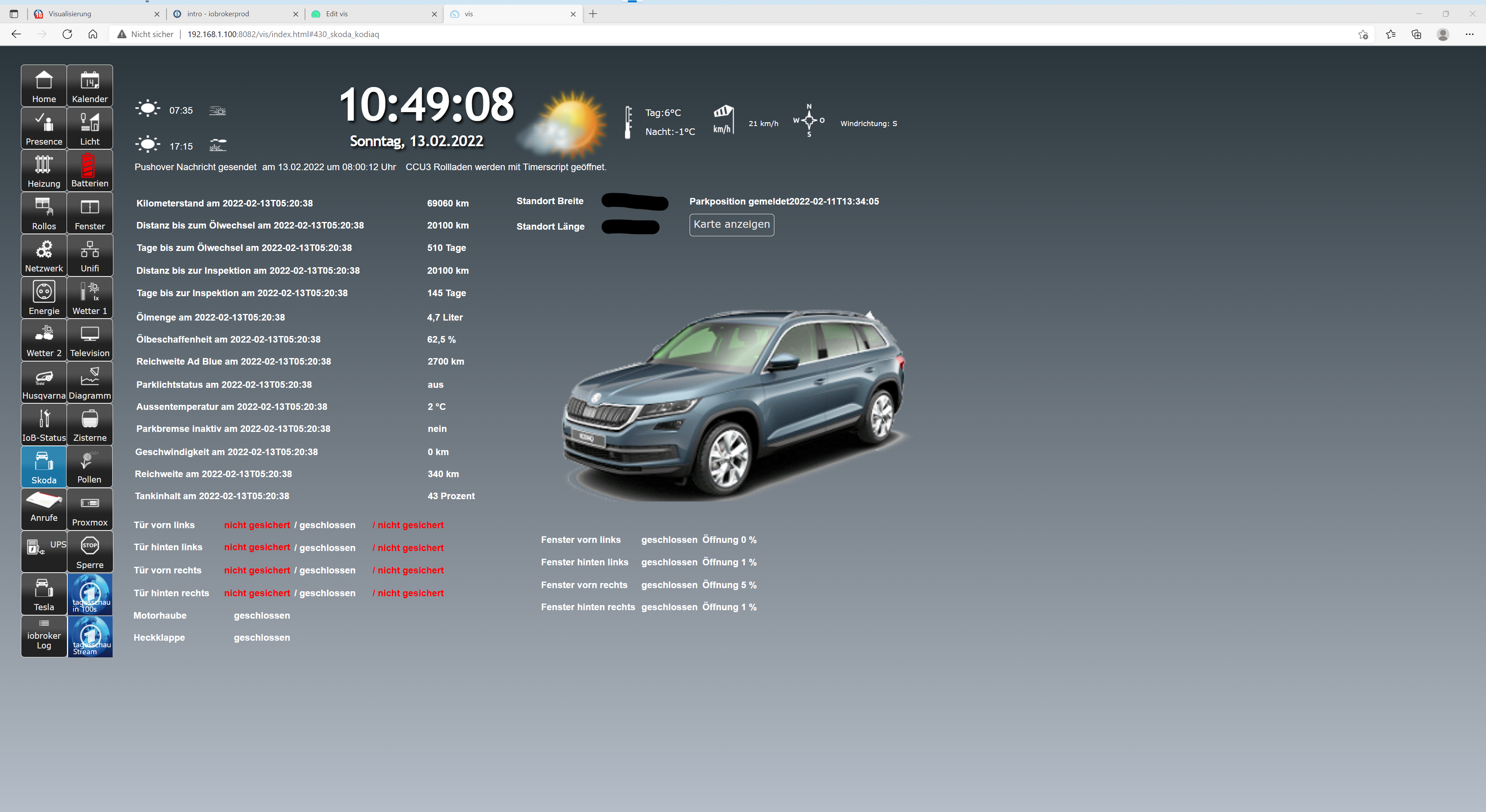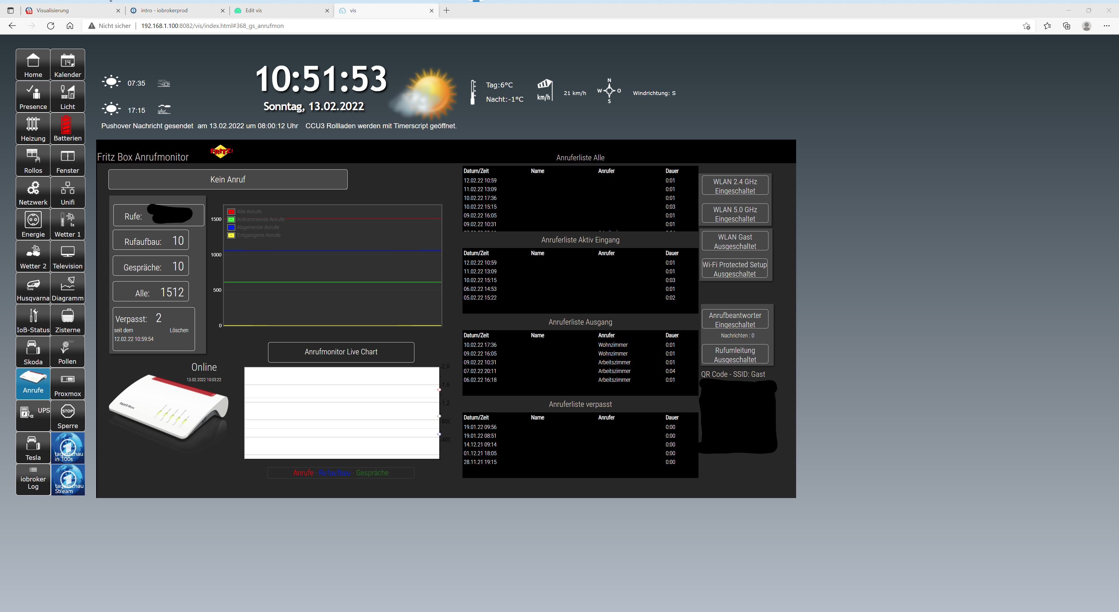 Die Schaltfläche Sperre ruft die Übersichtsseite auf, allerdings ist hier über die Übersichtsseite, speziell über die Navigationsbuttons, ein Widegt drüber. Damit kann ein "Unbefugter" keine Seitenwechsel durchführen. Oben rechts in der Ecke dieser Sperrseite ist ein Widget jqui-Navigation - Pw eingebaut. Dieser Button ruft dann wieder die "richtige" Übersichtsseite. Allerdings erst, nach dem man das Passwort richtig eingegeben hat. Hier wird also die Navigation erst nach Passworteingabe freigeschaltet und dann die View gewechselt. Könnte man auch als Startview festlegen oder als Fallbackview nach einigen Minuten.