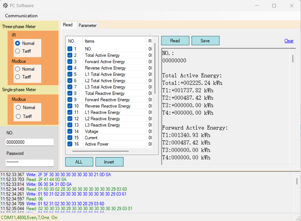 Mit der Software von Orno und USB IR Schnittstelle bekomme ich Daten aus den Zählern.