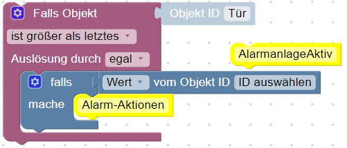 Und setze unten bei der zweiten falls Abfrage ein und ein mit der Alarmanlage -