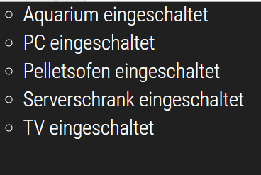 In Wert steht zB Aquarium eingeschaltet;Kinderzimmer eingeschaltet;PC eingeschaltet;Serverschrank eingeschaltet;TV eingeschaltet