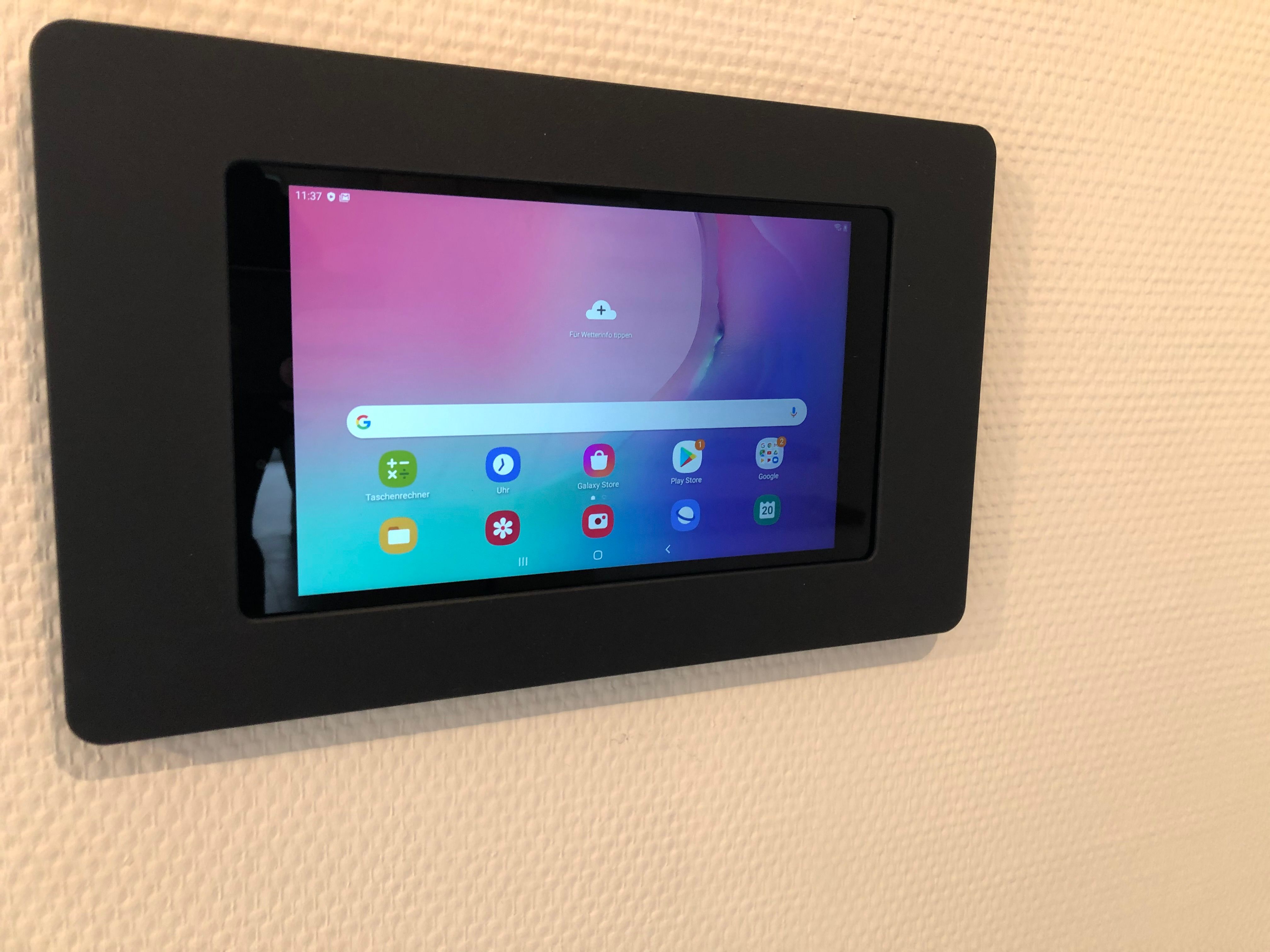 Low profile on-wall Galaxy Tab A 8.0 (2019) enclosure with removable face plate / cover for fast, easy tablet access!