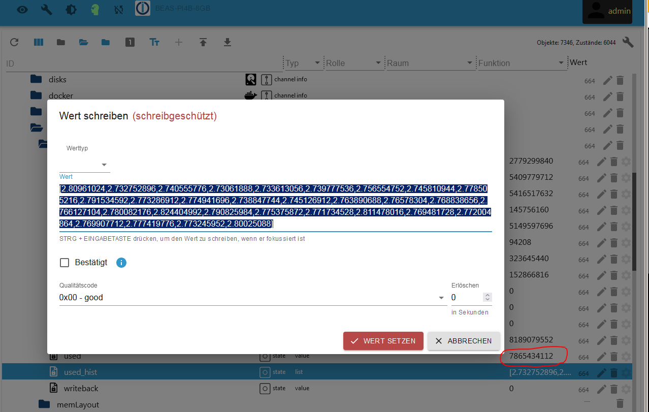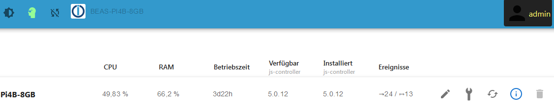 Ich würde das Thema gern noch einmal aufgreifen und mich der Frage nach der Herkunft der RAM-Nutzungsdaten anschließen, jedoch beim info-Adapter. Bei mir steht dort, daß das RAM annähernd vollständig ausgenutzt ist, was eigentlich nicht sein kann. Das System läuft ohne offensichtliche Probleme mit 20-25 Instanzen und die Liste im Datenpunkt "used_hist" zeigt auch eher eine Auslastung, die bei einem Drittel liegt, was der obigen These von @mrjeschke, daß die Anzeige unter HOSTs die freie RAM-Größe anzeigt, unterstützt.