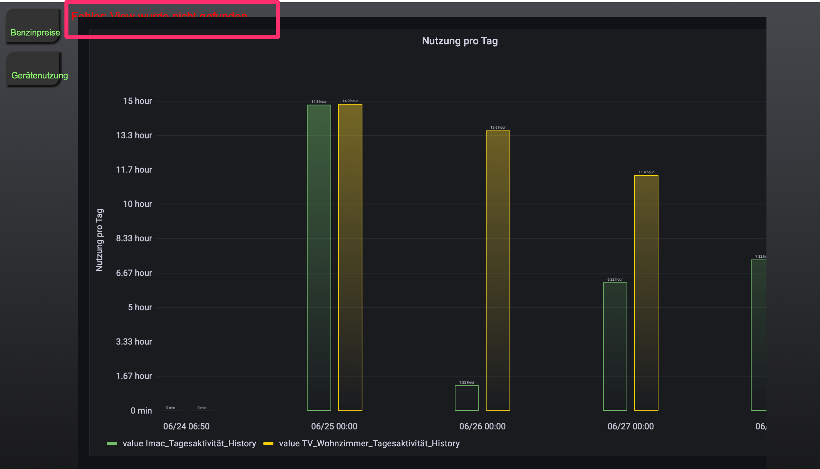 In der Runtime von "Statistiken" passiert nichts, wenn ich versuche von einer View "Gerätenutzung" zu "Benzinpreise" zu wechseln