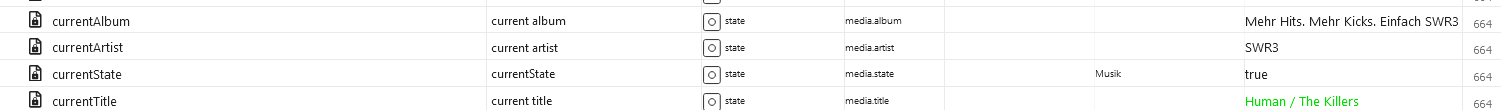 Du solltest aber wissen dass nicht jeder Radiosender die Titel überträgt. Mach mal SWR3 an und dann darfst dort gerne den Datenpunkt beobachten. Da steht einmal der Sendername, welche Show gerade läuft oder auch welcher Titel - immer abwechselnd.