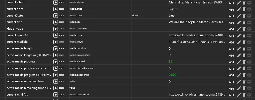 Du solltest aber wissen dass nicht jeder Radiosender die Titel überträgt. Mach mal SWR3 an und dann darfst dort gerne den Datenpunkt beobachten. Da steht einmal der Sendername, welche Show gerade läuft oder auch welcher Titel - immer abwechselnd.