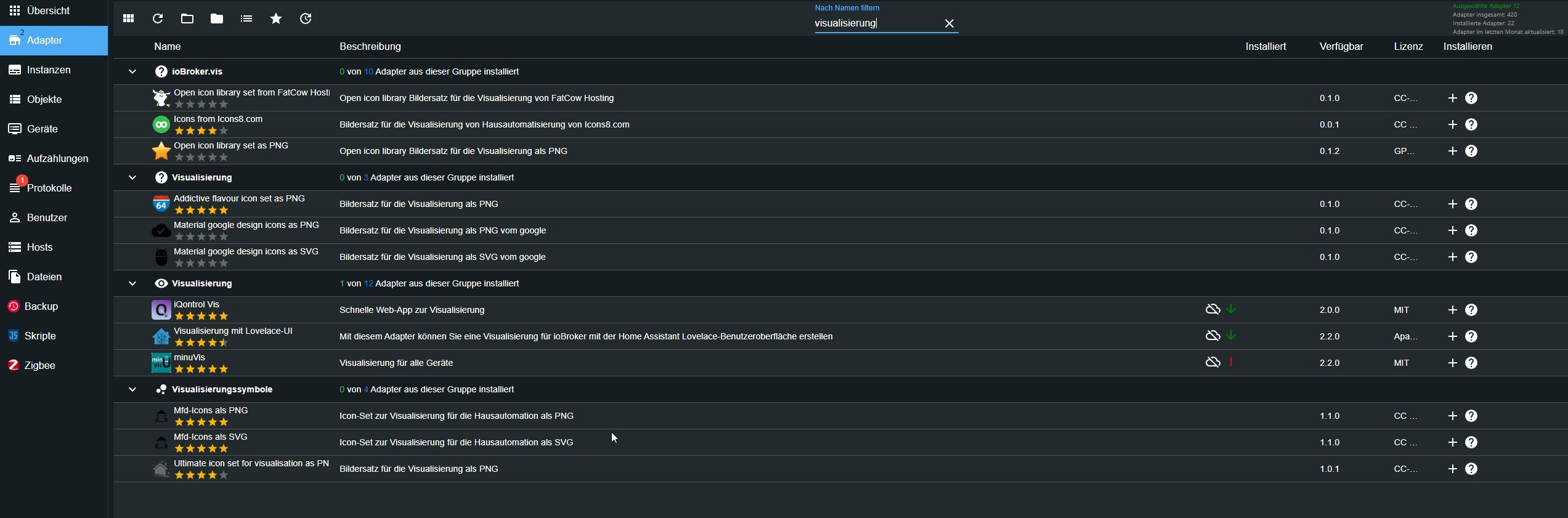 iobroker list adapters