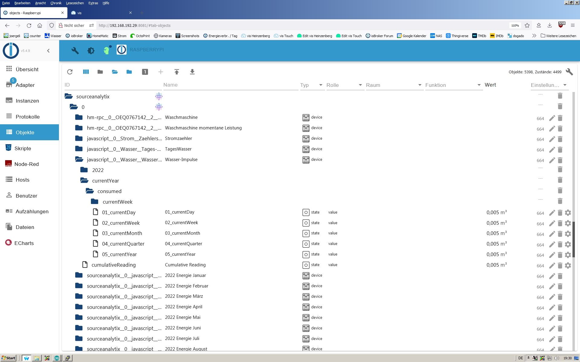Obwohl in sourceanalytics Water und l eingestellt ist, erfolgen die Berechnungen in m³ - macht aber nichts, da ich diese Werte dann in eCharts darstelle.