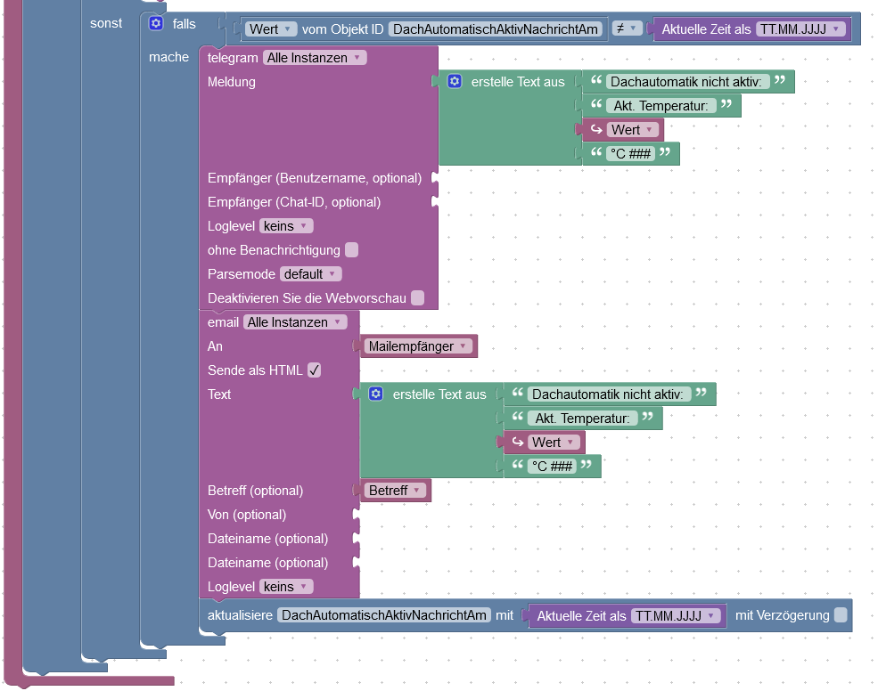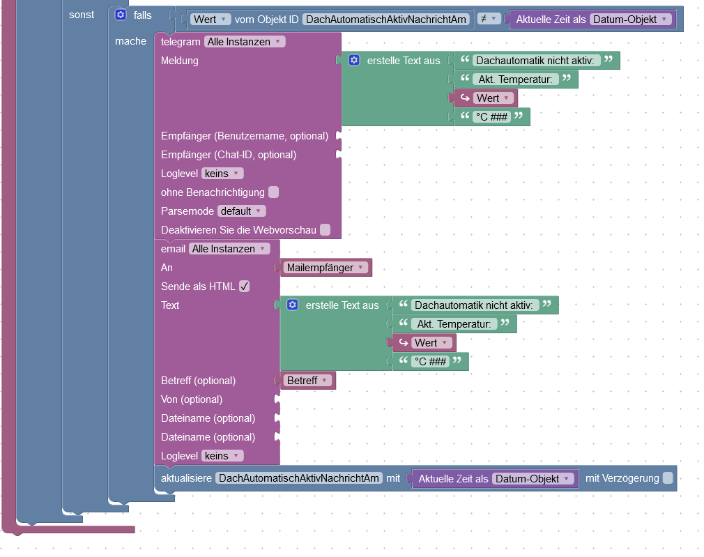 ich habe eine Automatik für meine Markise gebaut. Dazu habe ich neue Datenfelder erstellt und einen logisches Feld, ob die Automatik aktiv ist oder nicht.