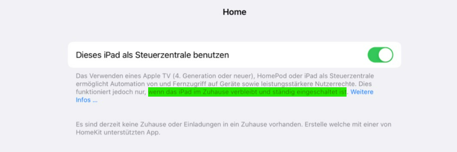 Die Steuerzentrale hingegen ist immer ein Apple Device, dass alle Homekit fähigen Geräte verwaltet. Nur dieses Gerät hat Zugriff über Deine Apple-ID mit dem Apple Universum und kann Inhalte synchronisieren - wie zum Beispiel die HomeApp, aber auch andere Services, die Du über die Cloud laufen lässt-