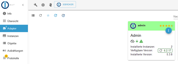 Adapter "admin" : 6.2.17 , installed 6.2.17