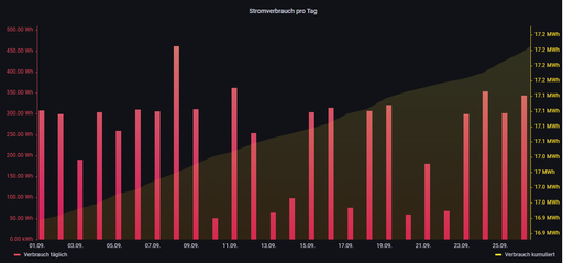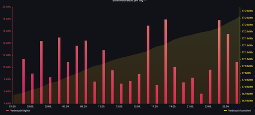 Du musst allerdings den Tagesverbrauch auf die jeweils andere Y-Achse legen und eine andere Skalierung wählen... sonst erkennst du die Linie nicht, weil der Verbrauch pro Tag ein 365igstel vom Jahr ist.