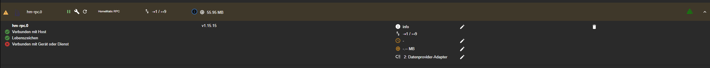 Alle anderen Adapter Homematic, Homematic-IP und virtueles Devices arbeiten einwandfrei.