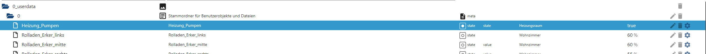 In der Variablen soll der aktuelle Zustand gesetzt werden: true oder false.Wenn dieser Wert sich ändert, sollen alle Ventile und Pumpen laufen. Das tun Sie auch, aber nur wenn ich den Zustand von "Heizung_Pumpen" manuell setze.