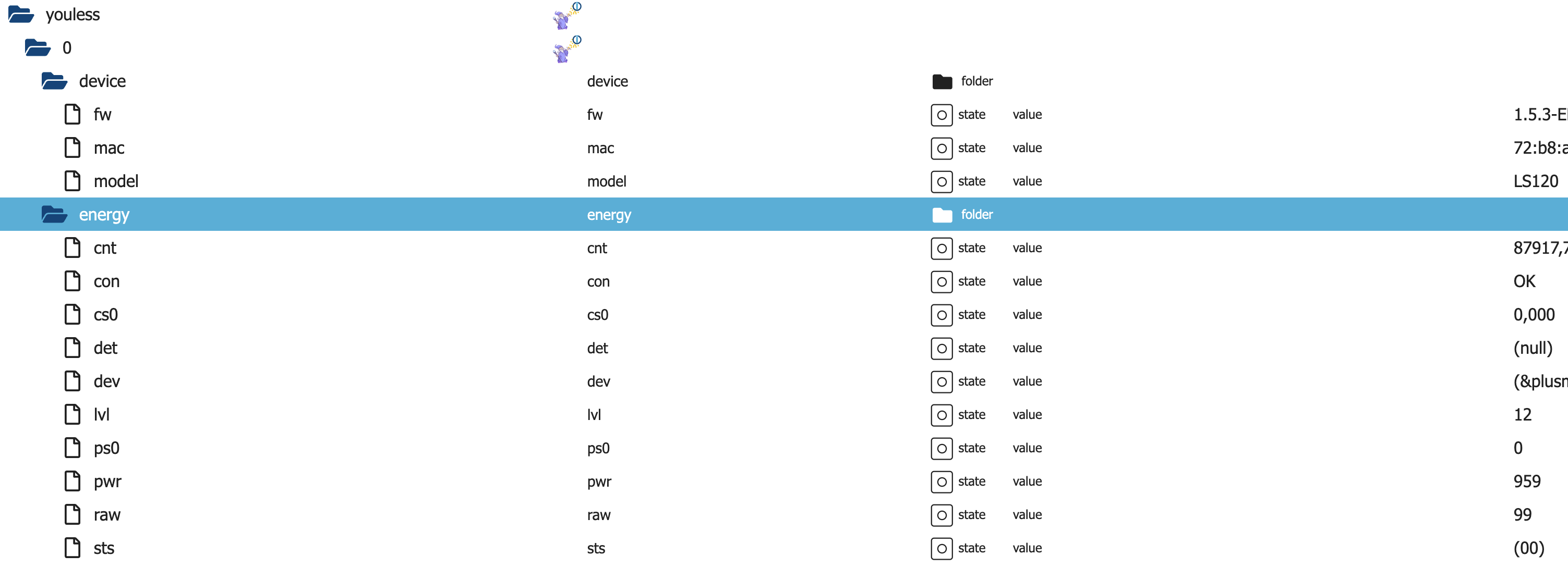 da ich noch keinen passenden Adapter für den Youless LS120 gefunden habe, habe ich einen einfachen Adapter geschrieben der die Werte in einem konfigurierbaren Intervall direkt vom Gerät abholt.