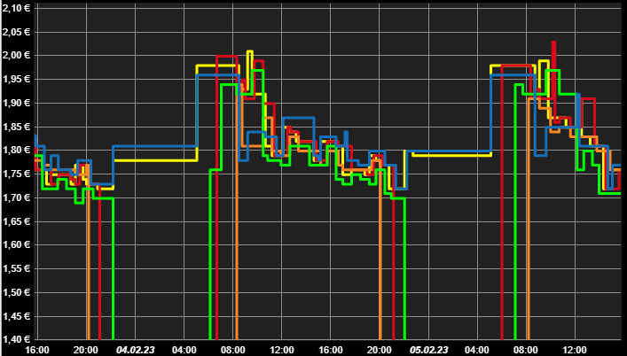Ich erstelle nun in FLOT ein Diagramm über die Zeit, um den Verlauf des Preises zu sehen. Leider habe ich immer wieder aus meiner Sicht Darstellungsfehler. Die Daten werden nicht mehr in FLOT aktualisiert dargestellt (horizontale Linie). Die Daten werden aber korrekt in influx hinterlegt - das habe ich schon geprüft: