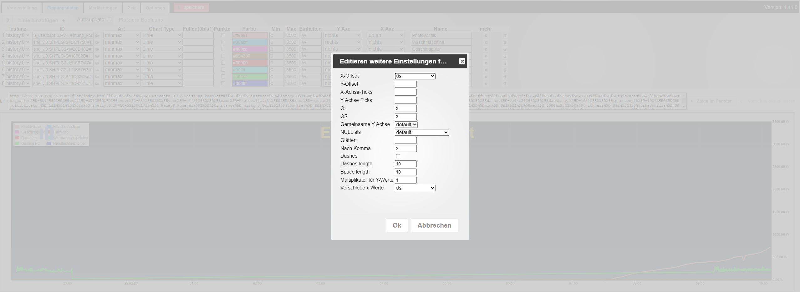 ...jetzt bleibt leider im Chart der letzte gemessene Wert 22,90W stehen, obwohl der Verbrauch eigentlich 0 wäre. Erst beim Restart nachts verschwindet er. Habe jetzt nochmal "nur Änderung aufzeichnen deaktiviert.