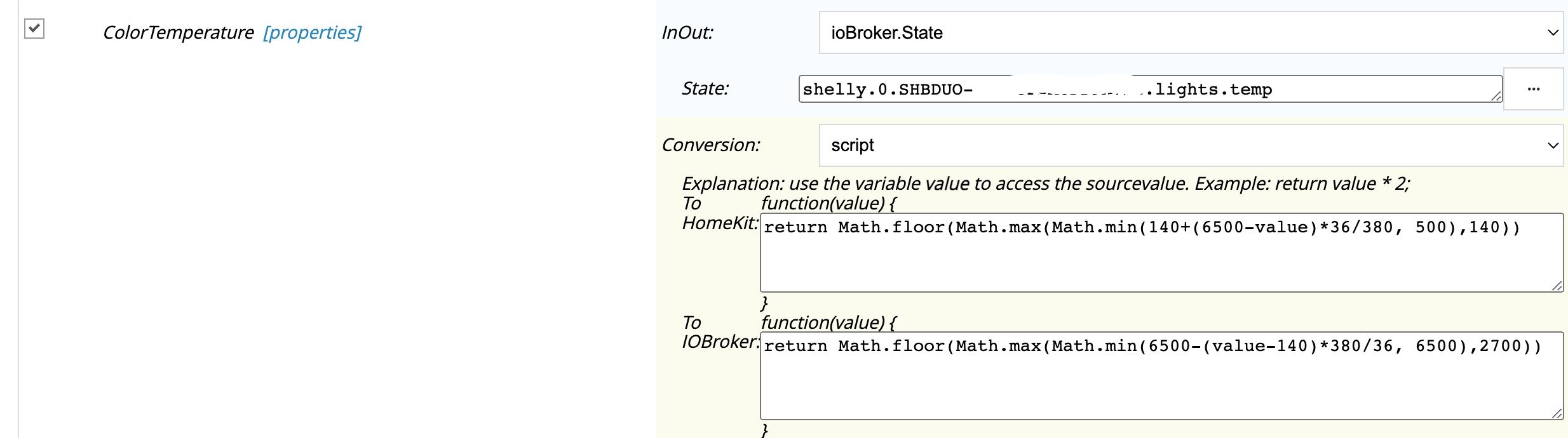 Bei mir ist der Bereich von 2700 - 6500 Kelvin. Die Zahlen für HomeKit sind gleichbleibend, also nur die 2700 und 6500 Zahlen auf eure Kelvin Werte anpassen und es funktioniert.Ich habe bewusst nach einer schlanken Lösung gesucht, die mir erlaubt, die Farben im HomeKit anpassen zu können. Der Knackpunkt bei mir war, dass die Berechnung immer Nachkommastellen hatte. Mit diesem kleinen Script funktioniert es nun zu meiner Zufriedenheit.
