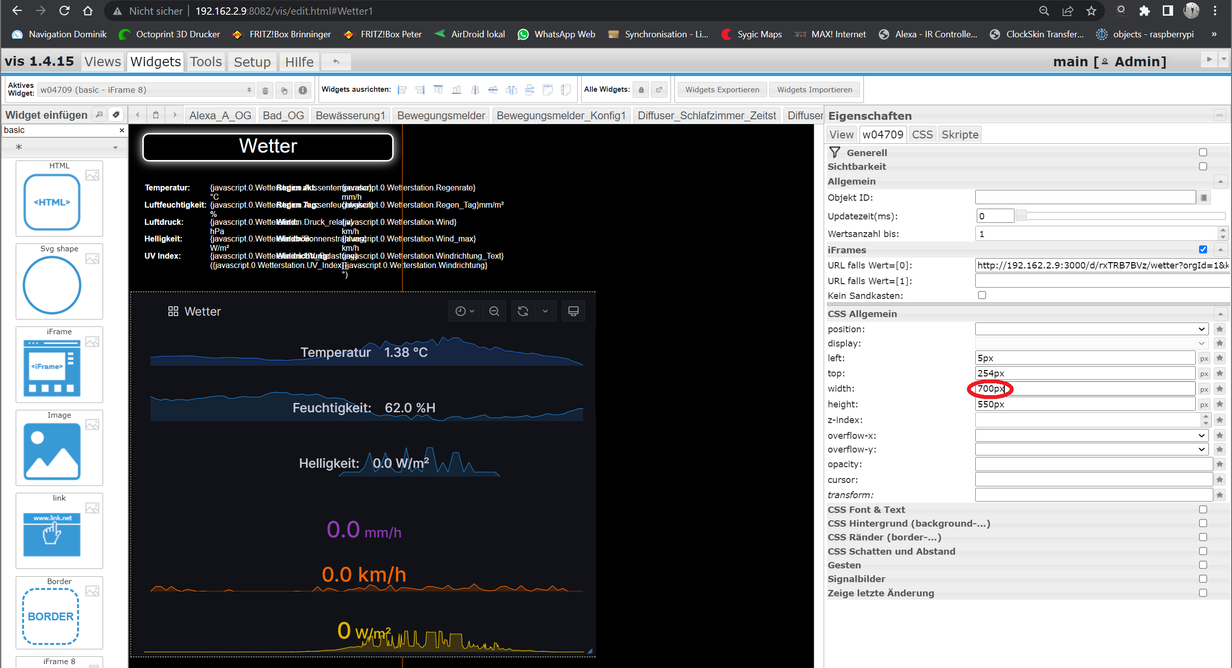 Ich möchte ein Dashboard in die ioBroker Vis einbinden, was im Grunde auch funktioniert.